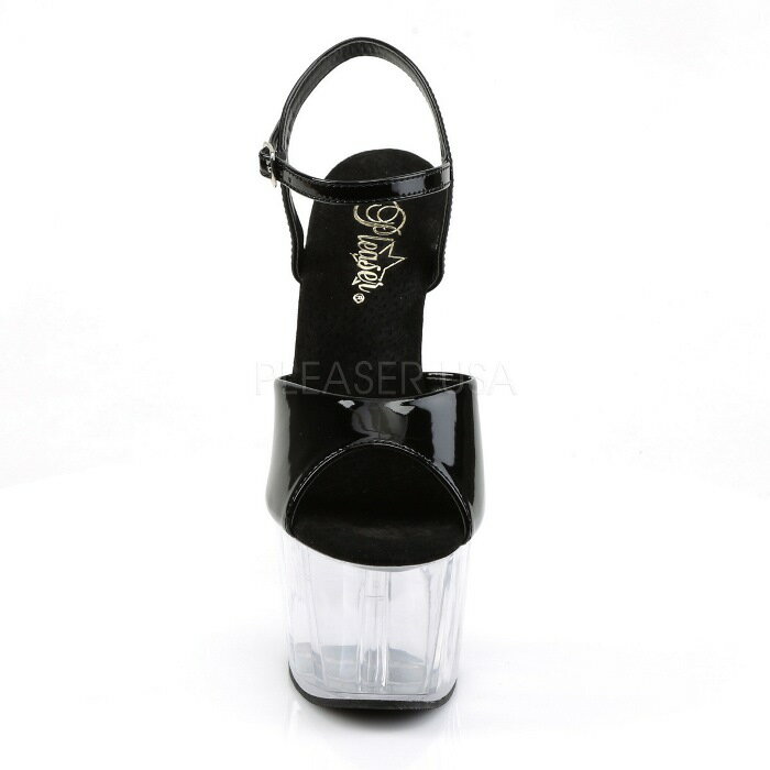 取寄 靴 送料無料 ベルト付き 厚底サンダル 17.5cmピンヒール 黒 ブラック クリア Pleaserプリーザー 大きいサイズあり イベント 仮装 女装 男装 パーティ- ハロウィン コスプレ