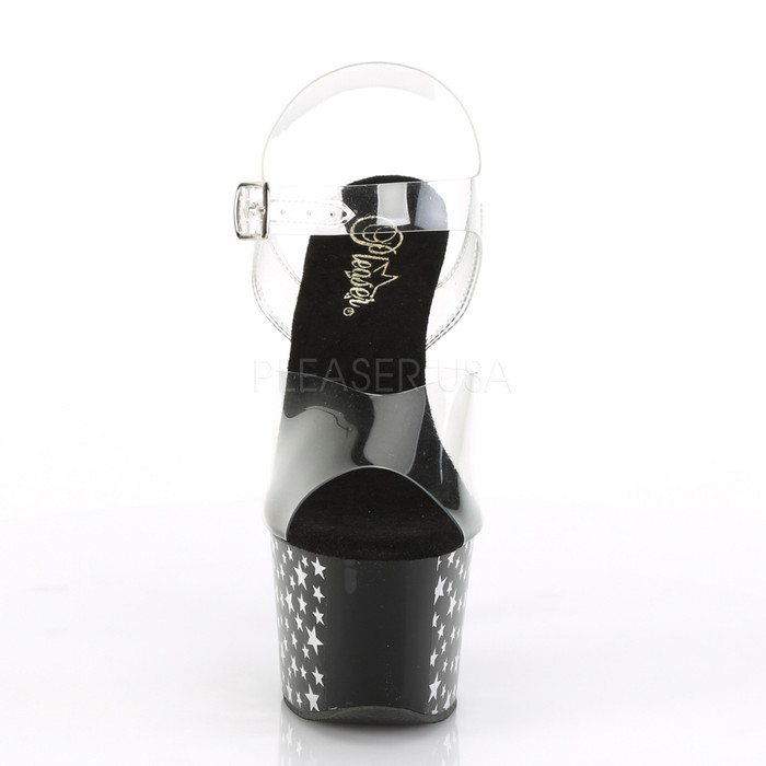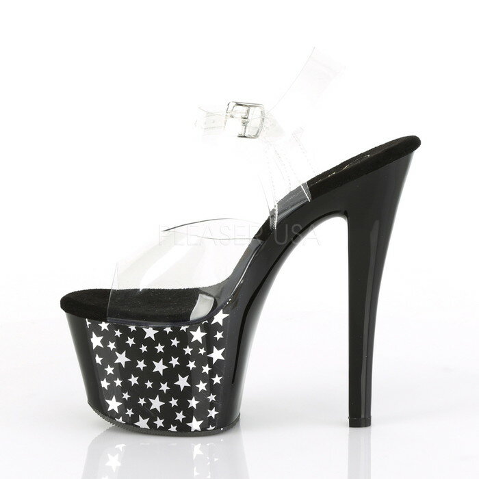 送料無料 Pleaser プリーザー 取寄せ 厚底サンダル 厚底 アンクルストラップ クリアアッパー クローム加工のスター飾り 黒(ブラック)の厚底 ピンヒール ハイヒール レディース コスプレ 衣装 ポールダンス 靴 大きいサイズ キャバ SKY308CP-1/C/B-SCH SKY-308CP-1