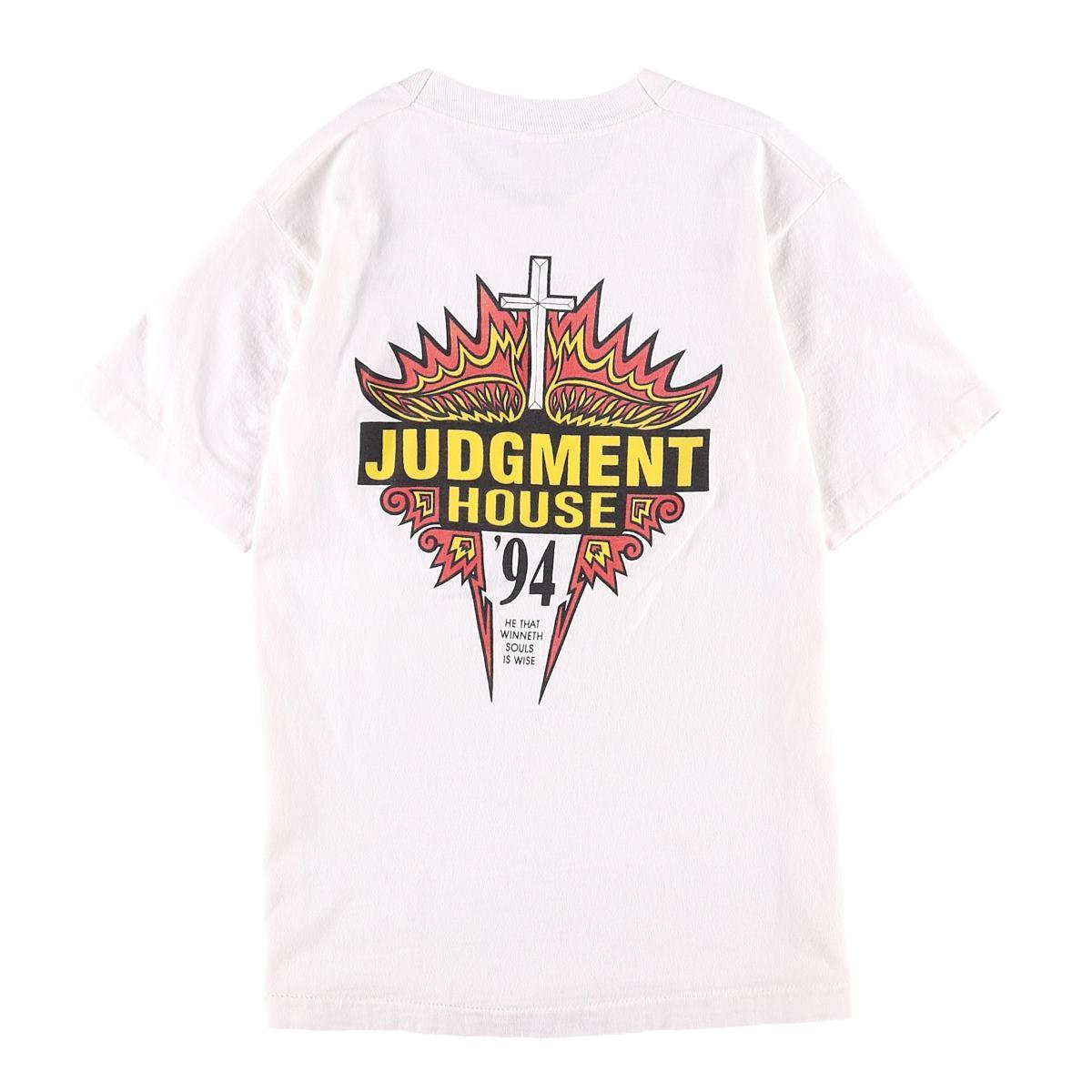 商品詳細ブランド・FRUIT OF THE LOOM・フルーツオブザルーム・特徴・クルーネック(丸首)・両面プリント・ヴィンテージ・モデル/形状・JUDGEMENT HOUSE '94・プリントTシャツ・素材・コットン:100%・色・ホワイト系 白色・柄・プリント・生産国・USA製・年代・90年代・サイズ・メンズS・表記サイズ:S・着丈:60cm・身幅:42cm・肩幅:40cm・袖丈:19cm・コンディション・C・カテゴリ・メンズ・Tシャツ・その他Tシャツ・トップス・商品番号・wbf2177・取扱店・桃谷店・スタッフコメントFRUIT OF THE LOOM JUDGEMENT HOUSE '94 プリントTシャツ / メンズS / 商品番号 wbf2177※USEDですので使用感、前面に薄汚れ、背面にリペア跡などございますが、まだまだご愛用していただけます。