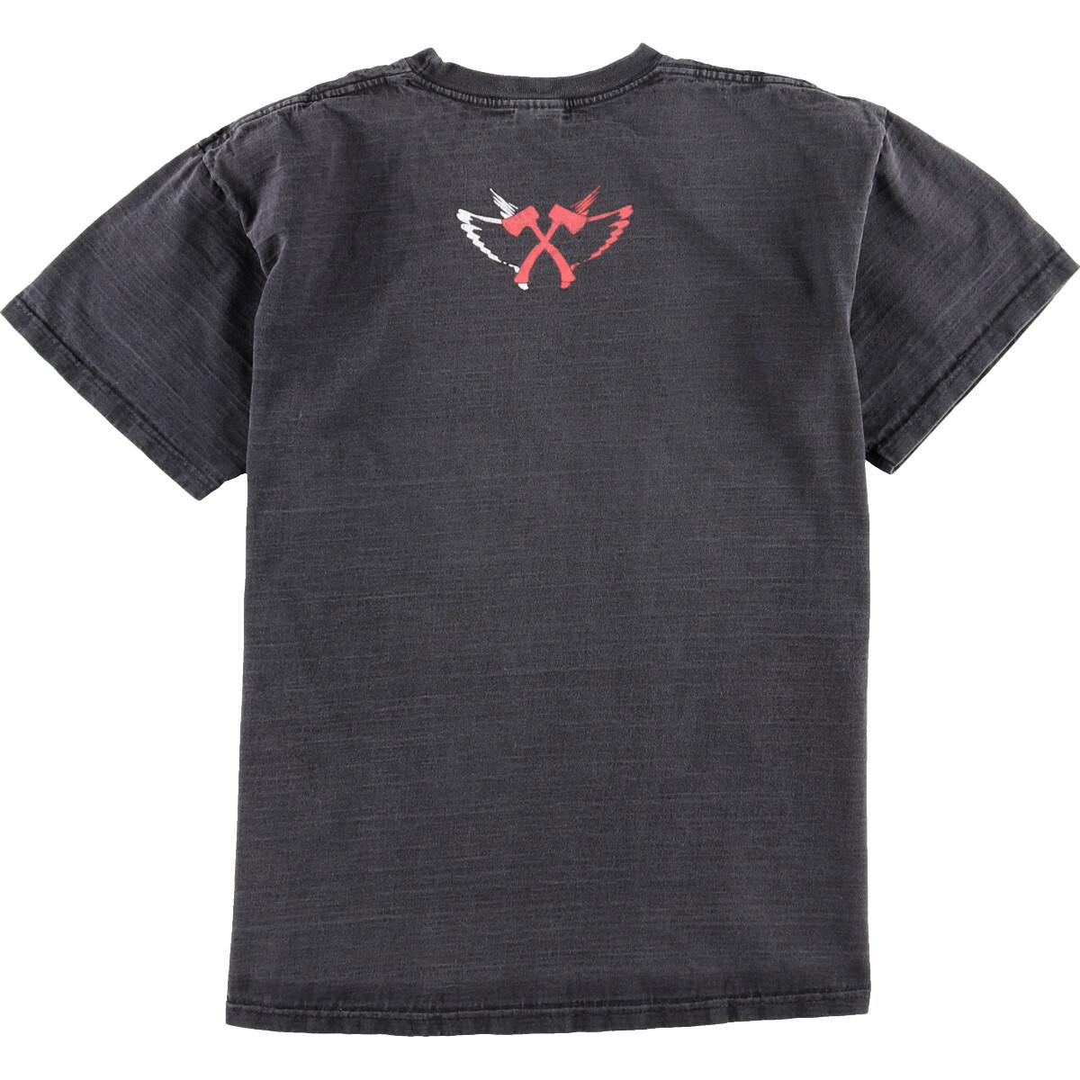 商品詳細ブランド・FRUIT OF THE LOOM・フルーツオブザルーム・特徴・クルーネック(丸首)・両面プリント・ロック・モデル/形状・KARB HOLZ・バンドTシャツ・素材・コットン:100%・色・ブラック系 黒色・柄・プリント・生産国・モロッコ製・年代サイズ・メンズL・表記サイズ:L・着丈:63cm・身幅:52cm・肩幅:47cm・袖丈:17cm・コンディション・B・カテゴリ・メンズ・Tシャツ・バンドTシャツ・トップス・商品番号・eaa012759・取扱店・ネットショップ・スタッフコメントFRUIT OF THE LOOM KARB HOLZ バンドTシャツ / メンズL / 商品番号 eaa012759※USEDですので使用感などございますが、まだまだご愛用していただけます。