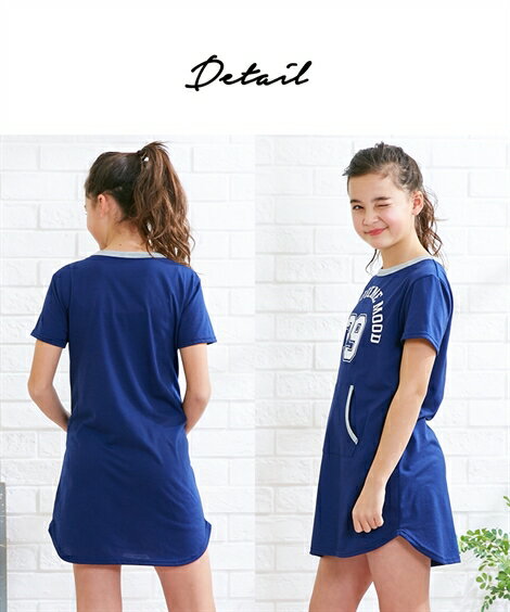 パジャマ キッズ ポケット付ルーム ワンピース 女の子 子供服・ジュニア服 ネイビー/杢グレー 身長140/150/160cm ニッセン