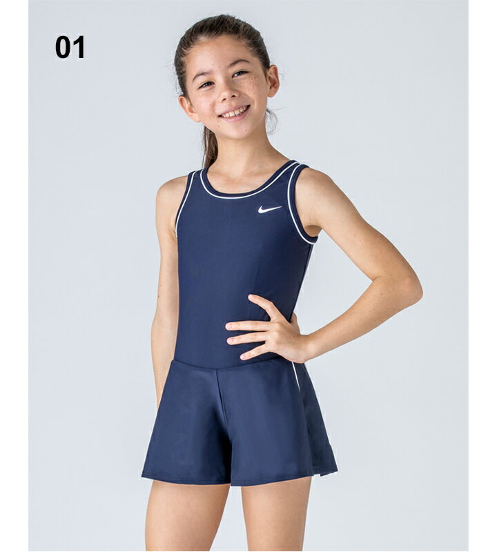 ナイキ(NIKE)から、キュロット付きワンピースの女の子用水着です。